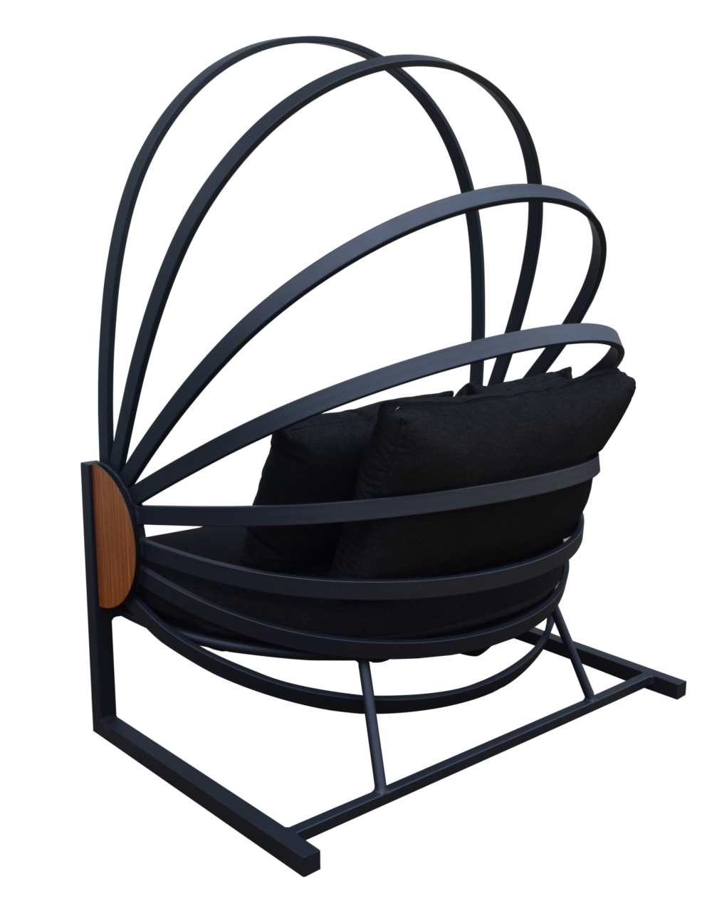 วัสดุ : อลูมิเนียม / ไม้ / เบาะหุ้มด้วยผ้าสำหรับภายนอก