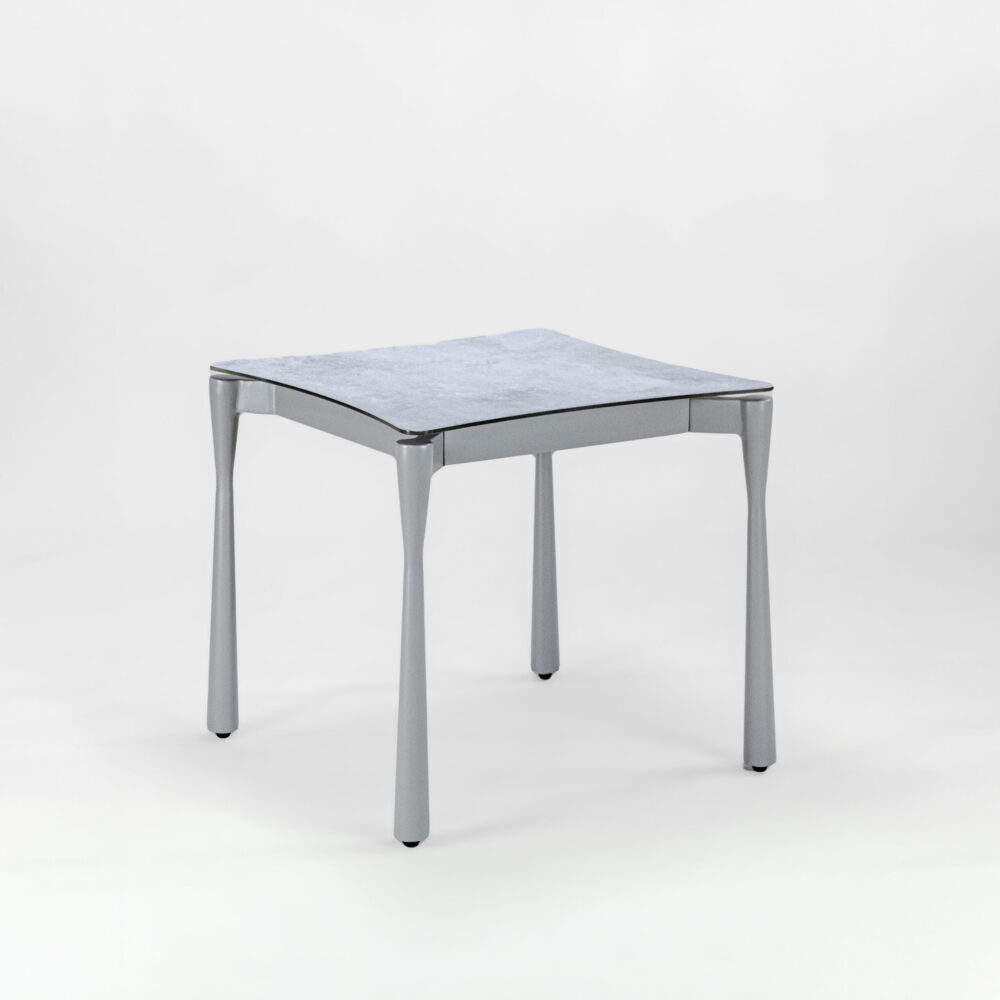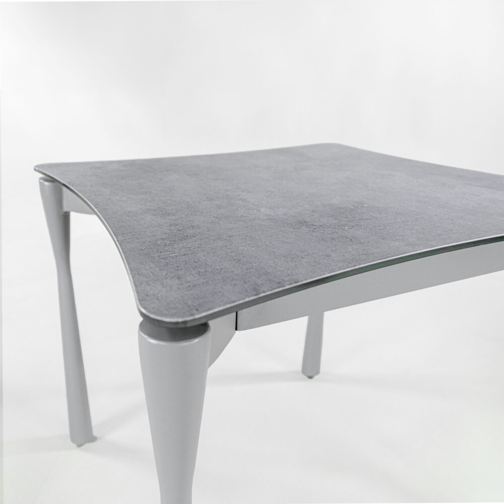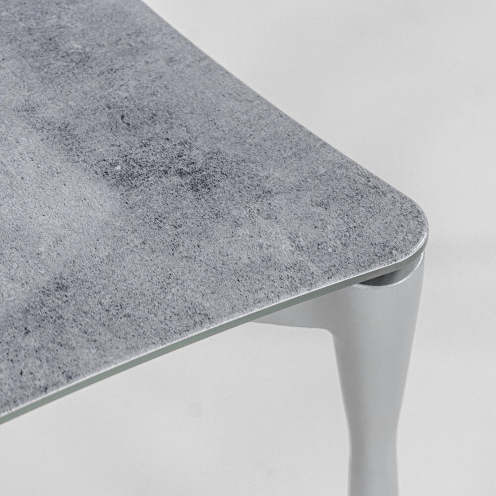 วัสดุ : โครงอลูมิเนียม / หน้าท็อปกระจกเทมเปอร์แต่งลายหิน